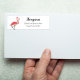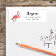 This design features a Christmas holiday return address label, a whimsical fun pink colourful bird, a Christmas string of lights, with a pink flamingo tropical bird label, a festive funny cute chic tropical, with a beach holiday pink and green theme, a Christmas holiday mailing supplies, a stylish trendy calligraphy script, a Christmas holiday envelope seal, a Christmas holiday card envelope sticker