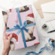 Bright and fun Holiday or Christmas gift wrapping paper with a Siamese Cat in a Santa hat.