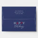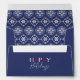 This design features Christmas holiday navy blue festive, clean trendy classic traditional minimal, modern elegant simple trendy,5x7 a7 cute whimsical, return address back flap, simple minimalist minimal fun, with minimal holiday blue and white snowflakes, great Christmas holiday mailing supplies, coordinating matching envelope, holiday Christmas greeting envelope