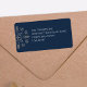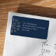 This design features a Christmas holiday navy blue silver return address label with a snowflake snow classic elegant design, a Christmas cute whimsical fun simple, Christmas holiday return address label, Christmas holiday envelope seal, a custom customised personalised family, with last name address city town, simplistic creative elegance minimalist, with white text font lettering simple, a block style lettering family name
