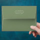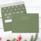 This design features Christmas holiday green festive, clean trendy classic traditional minimal, modern elegant simple trendy,5x7 a7 cute whimsical, return address back flap, simple minimalist minimal fun, with minimal holiday green and white snowflakes, great Christmas holiday mailing supplies, coordinating matching envelope, holiday Christmas greeting envelope