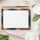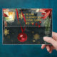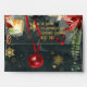 A luxurious and festive Christmas holiday mailing envelope printed on all sides including the inside. The design features a dark green forest winter's night background with shimmery gold snowflakes, watercolor-painted poinsettias, pine cones and red berries with a warm lit lantern and a shining red ball ornament on red ribbon falling in mid-air. The back flap of the envelope has your return address and the inside opens to beautifully matched graphics. This elegant and posh envelope will become a keepsake for family and friends who are lucky enough to receive their cards in it for the holidays. Matching greeting cards and invitations can be viewed in the Christmas Holiday Splendour collection.