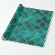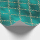 Christmas Holiday Teal Gold Glitter Damask Gift Wrapping Paper