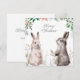 Christmas Holiday Watercolor Bunny. Rabbit, Floral Card