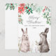 Christmas Holiday Watercolor Bunny. Rabbit, Floral Card
