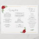PROGRAM IS SHIPPED FLAT AND *NOT* SCORED. | Theme Parties' Christmas holiday wedding program features three panels with all the details of your wedding day. The design is accented with faux gold borders and trim, plus pretty watercolor holiday greenery and watercolor red poinsettias. #ChristmasWedding #HolidayWedding