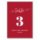 Christmas Holiday Winter Red Flat Wedding Table Number
