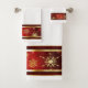 Christmas Holiday Winter Red with Gold Snowflakes Bath Towel Set