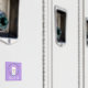 This modern holidays design features a cute llama with surrounded by Christmas lights with the text "Fa La La" in white typography on a purple background. #christmas #holidays #seasonal #festive #modern #chic #stylish #elegant #llama #animals #wild #cute #purple #home #work #school #office #gifts #christmasgifts #secretsanta #magnets #stationery #kitchen