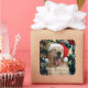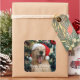 Dress up your holiday cards and gifts with these cute stickers! Design features a photograph of an adorable golden retriever dog who is wearing a Santa hat in front of a Christmas tree. Add your name and custom message!