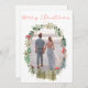 Christmas Holidays Photo Watercolor Floral Wreath Holiday Card