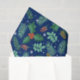 Christmas holly and pinecones in a seamless pattern on a dark blue background.
