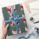 Festive foliage shades of grey green holly leaves and red berries graphic art on a dark green background add your own photo and message Christmas wrapping paper. Ideal for gift wrapping festive seasonal Christmas gifts to family and friends. Graphic design by www.mylittleeden.com
