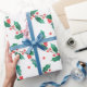 Christmas holly and red berries pattern wrapping paper