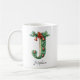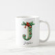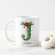 Christmas Holly & Bells Letter J Personalized Name Coffee Mug