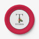 Christmas Holly Berry Monogram Initial T Paper Plate