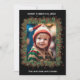 A frame of holly and greenery surround a photo of your choice for a unique holiday card. The message at the top and bottom is completely editable. There is also an area for a message on the back side.