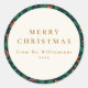 Christmas Holly Botanical Greenery Custom From Our Family Name Classic Round Sticker in Navy Blue, Red, and Green
