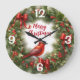 Christmas Holly, Bows and Cardinal Large Clock