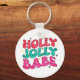 Christmas Holly Jolly Babe Modern Glitter Script Key Ring