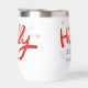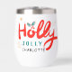 Christmas Holly Jolly Fun Winter Personalised Name Wine Tumbler features the text "Holly Jolly in red and blue modern calligraphy script typography and personalised with your custom name. Accented with holly and snowflakes. Perfect gifts for Christmas and the holidays or for Christmas parties. Designed by ©Evco Holidays www.zazzle.com/store/evcoholidays