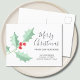 It is decorated with watercolor holly and berries in shades of red and green, and says "Merry Christmas From Our New Home."
