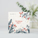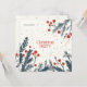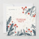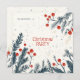 Christmas party invitation with modern and whimsical illustration of holly berries and fir tree branches.