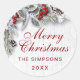 Christmas Holly Pine Branch Rustic Holiday Classic Round Sticker