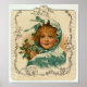 Very lovely vintage Christmas image of a beautiful child dressed in a green cloak and carrying sprigs of holly.