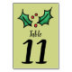 A Christmas holly wedding table number by Helen McCartney Designs.