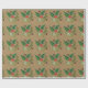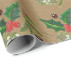 Christmas paper with a whimsical/festive holly and berry design, set on a kraft colored background.