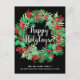 Christmas Holly Wreath Happy Holidays Black Moving Announcement Postcard