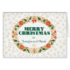 A festive Christmas card to Personalise on the front cover, with a Christmas wreath of Holly, Ivy, Poinsettias, Fir Cones, Christmas Roses and a matching red bow, outlined in gold-effect, with gold-effect snowflakes on a white background.