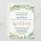 This christmas holly wreath wedding invitation card is perfect for a winter wedding. The design features a watercolor green wreath with red berries and an elegant faux gold glitter font.