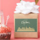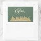 Christmas House Green Retro | Real Estate Custom Modern Rectangular Sticker. Show your clients how much you appreciate them this Christmas season with this silhouette winter houses with a starry sky design. Perfect for real estate company/business looking to strengthen relationships and express gratitude to their clients as a label for gift/parcel or as an envelope seal. Make this holiday season memorable for your clients and keep your name top-of-mind with elegant designed stickers that shows you care. The text on the sticker can be personalised to your own message, name, company name or contact. Order yours today and spread the beauty and joy of Christmas throughout the New Year!