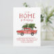 Lovely housewarming invitation depicting an iconic holiday scene: the family car bound for home with the perfect Christmas tree on top. Full of charm these designs invoke festive nostalgia. Historically, housewarming parties were held for homes that lacked central heating, but go ahead and add a little figurative warmth to your starter pad. Once you’ve purchased the stemware and poured the wine, it’s time to invite the guests.