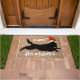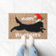 Christmas howlidays funny golden retriever ön a burlap doormat. A cute unique design doormat, black dog wearing santa hat lying on burlap, look cute for dog lovers.