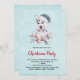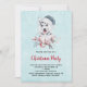 Christmas party invitation with a whimsical and cute watercolor painting of a husky dog wearing a blue Santa hat.