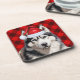 Fun coaster set for the person who loves their Siberian Husky dog. This one wears a Santa hat for a stylish approach to the holiday season, and sits cutely against a red buffalo holiday plaid background to decorate your home or office with seasonal pet lover joy.