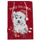 Christmas Husky On Red Medium Gift Bag