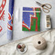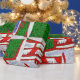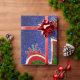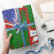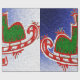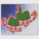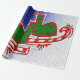 This image is a set of ice skates in Christmas colours of red, green and white. A blue & white backround with glitter was added to this design. This gift wrap is available in assorted styles, and sizes.