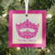 This ornament shown with an iconic American crown printed onto a square glass ornament. Personalise the text to your own title, name or phrase. Shown in white background, deep pink-fuchsia colour outer border, gold colour inner border and fuchsia-pink colour crown image. You can personalise this item further by change colouring of crown, text and background if desire. Customise this item with this template or buy as shown.
