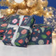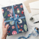A joyful mix of hand-drawn holiday icons — stockings, candy canes, berries, stars, ornaments, and more — scattered over a rich midnight blue background. Fun, bright, and perfect for wrapping any gift.