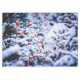 Sparrows and a pigeon by the bird feeder in wintertime. Snow-covered Christmas trees decorated with red, blue balls around. Christmas idyll. One-of-a-kind, chic table cloth. Do not forget to choose another size of the cloth. Use the Customise button to adjust the image, if needed (fit/fill button). You can also transfer this design to a large variety of other products, just choose a product from a line hereinunder. Have fun and be happy!