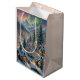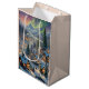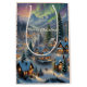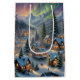 This gift bag features a snow-covered village with brightly lit houses in the mountains, surrounded by tall fir trees, polar lights shining in the sky. Wonderful gift bag for your Christmas gifts! Custom text.