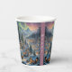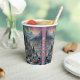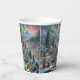 This paper cup features a snow-covered village with brightly lit houses in the mountains, surrounded by tall fir trees, polar lights shining in the sky. Wonderful party supply for your Christmas Party! Custom text.