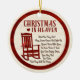 Honour the memory of a loved one with this heartfelt "Christmas in Heaven" red memorial ornament. Featuring a touching poem and a rocking chair design with a red cardinal, this ornament brings comfort during the holiday season. Personalise it with a photo, name, and date on the back to create a beautiful tribute that keeps cherished memories close. Perfect for remembering those who are no longer with us during the festive season.
