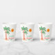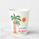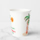 These colourful paper cups are decorated with palm trees and string lights on a watercolor background.