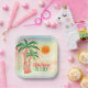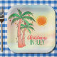Invite family and friends to your Christmas themed celebration and decorate it with these island style paper plates featuring hand drawn palm trees decorated with lights on a watercolor background.