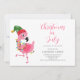 Christmas in July party invitation. Easy to change the text. Pretty, cute pink flamingo.